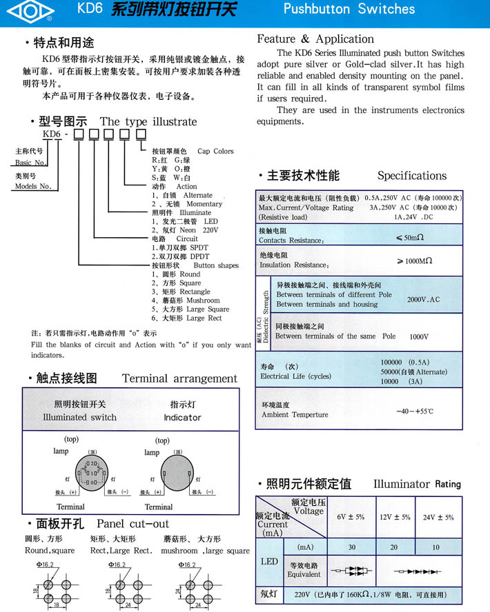 • KD6系列帶燈按鈕開關(guān) 產(chǎn)品型號(hào):KD6系列帶燈按鈕開關(guān)