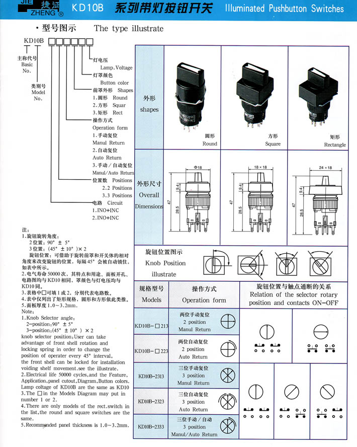 • KD10B系列帶燈按鈕開關(guān) 產(chǎn)品型號(hào):KD10B